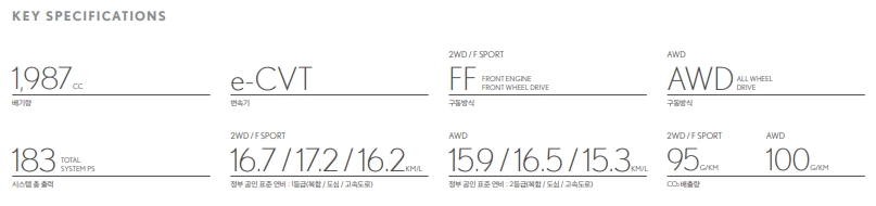 렉서스 UX 250 F 스포츠의 공인연비는 15.9km/l입니다.